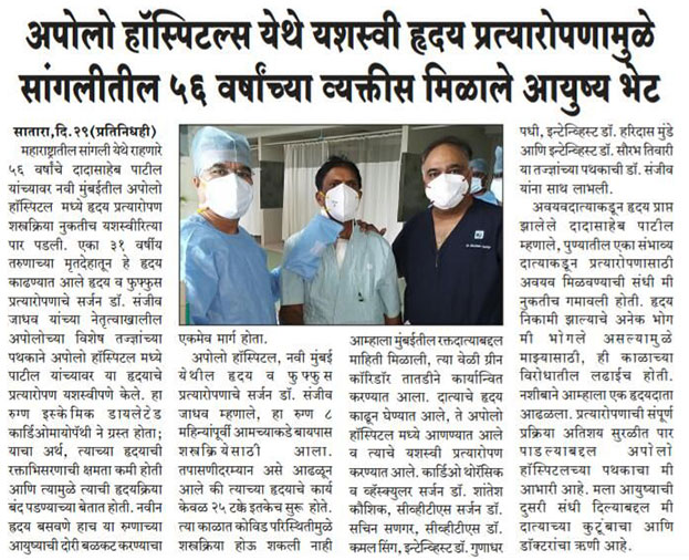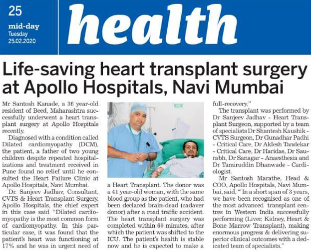 Dr. Sanjeev Jadhav, Consultant CVTS, Heart & Lung Transplant Surgeon at Apollo Hospitals, Navi Mumbai.